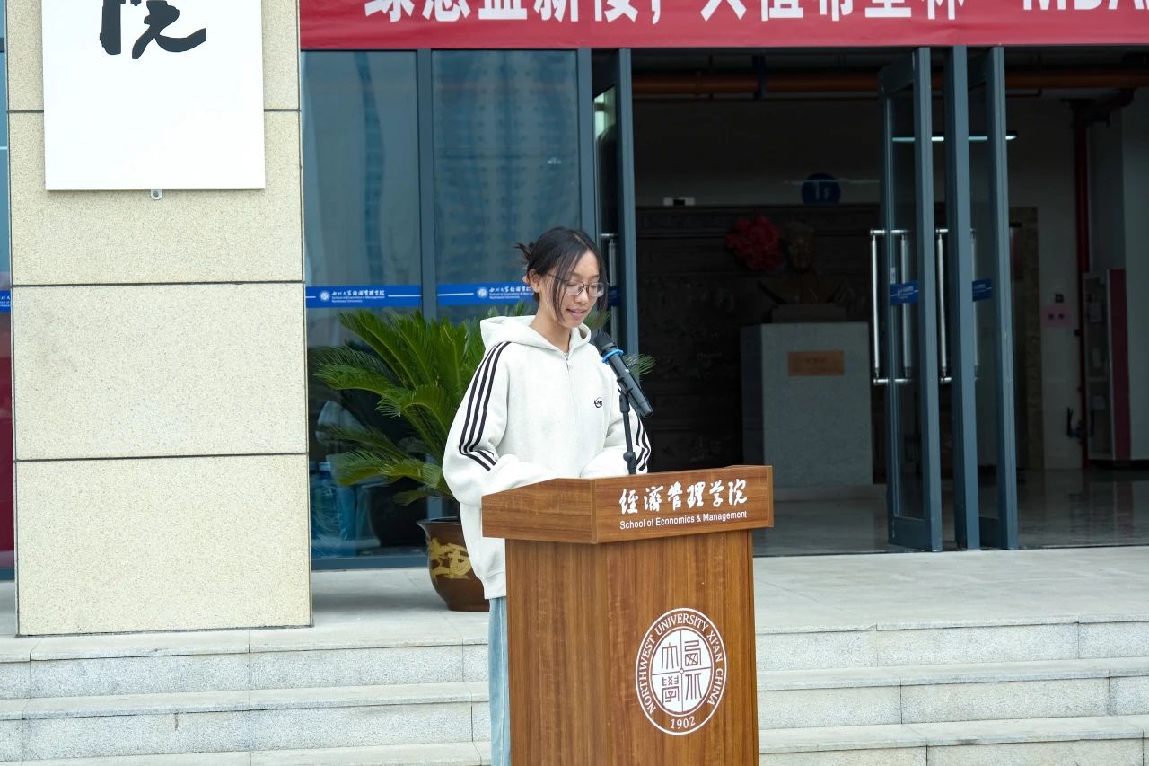 张志飞代表学校向参与此次活动的师生、校友及来宾表示热烈欢迎和诚挚感谢,对心系母校发展,支持母校建设的MBA杰出校友表达崇高敬意。他强调本次活动既是美化校园环境、提升校园品质的实际行动,也是进行劳动教育的具体内容,更是深入践行习近平总书记“绿水青山就是金山银山”发展理念的生动实践。他指出种下的桂花树和海棠树寓意着吉祥富贵、繁荣昌盛,期望西大学子在各自领域摘下胜利的桂冠,期望经管学院培育出更多具有全球视野与社会担当的栋梁之才,祝福西北大学在“双一流”建设中取得佳绩。