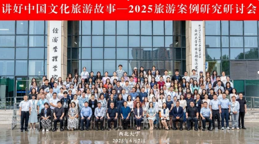 6月7日,“讲好中国文化旅游故事——2025旅游案例研究研讨会”在西北大学长安校区成功举行。本次案例研究研讨会由《旅游学刊》编辑部和西北大学主办,776net必赢官网、西北大学中国西部经济发展研究院、西北大学中国文化和旅游融合研究中心承办,西安外国语大学旅游学院、北京第二外国语学院旅游科学学院协办,陕西旅游研究院、陕西旅游协会教育分会、成都威爱数矩科技有限公司支持。西北大学副校长曹蓉、北京联合大学旅游学院院长、《旅游学刊》主编严旭阳、陕西省旅游协会会长辛建伟出席会议并致辞;来自清华大学、中山大学、南开大学、对外经济贸易大学、北京联合大学、湖南师范大学、华南理工大学、华南师范大学、暨南大学、新疆大学、西南民族大学、西藏民族大学、四川师范大学、渤海大学、重庆理工大学、安徽大学、广西师范大学、吉首大学、陕西师范大学以及成都威爱数矩科技有限公司、陕西华清文化创意有限公司等全国高校和业界的百余位专家、学者、企业代表、师生代表参加本次研讨会。