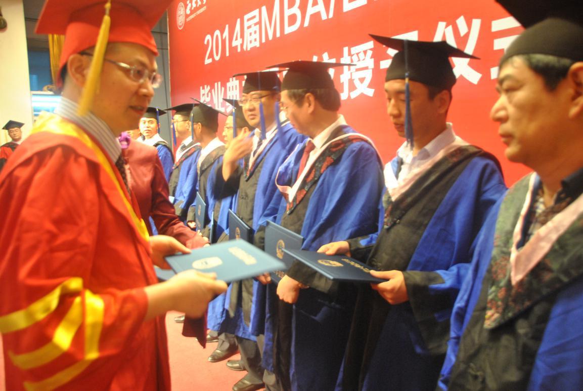7月5日上午,我院成功举办了2014届EMBA、MBA毕业生学位授予仪式暨毕业典礼。校长方光华教授、校研究生院常务副院长王正斌教授、海航商业控股有限公司董事长兼总裁马超、我院党政班子成员、各系系主任、各中心主任及教师代表以及EMBA/MBA毕业生及家属500余人出席了活动。活动由副院长吴振磊副院长主持。本次共有68名EMBA学员获得高级管理人员工商管理硕士学位,272人获得工商管理硕士学位,127人完成陕西省工商管理硕士学习,顺利毕业。
