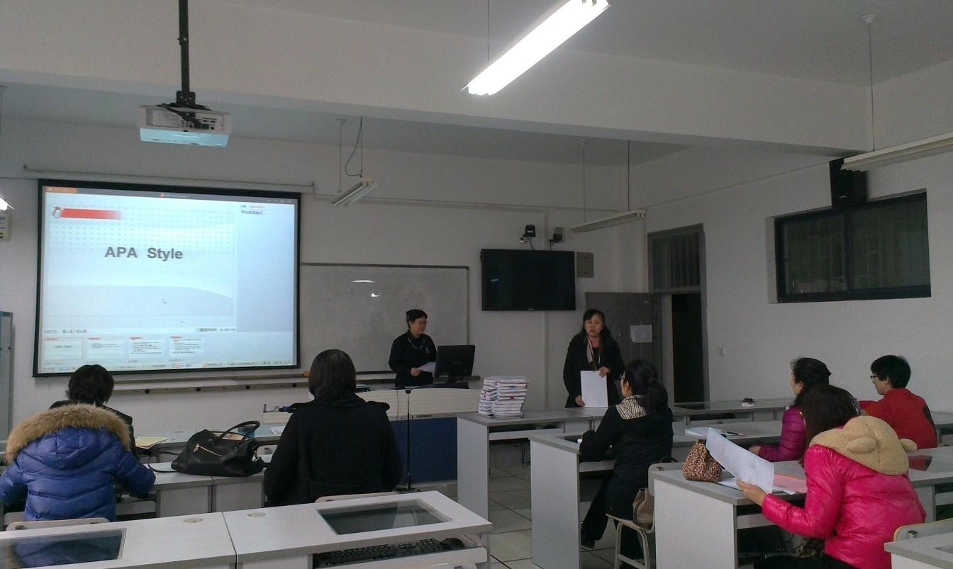 2014年3月5日776net必赢官网教师学术沙龙2014年第2期在长安校区776net必赢官网远程实验室(8212)举行。本期学术沙龙的主题是“国际社会科学学术写作规范——APA格式”,由776net必赢官网康蓉副教授主讲,何爱平教授主持,776net必赢官网青年教师与博士生参加了本次学术沙龙活动。