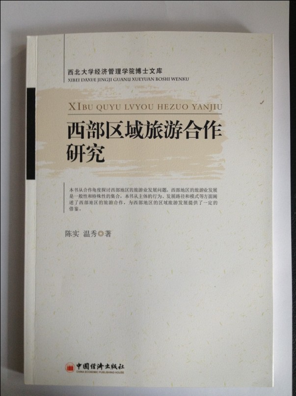 2013年6月我院教师陈实、温秀博士的专著《西部区域旅游合作研究》由中国经济出版社出版,该书是我院陕西省重点学科旅游管理学建设项目的研究成果。