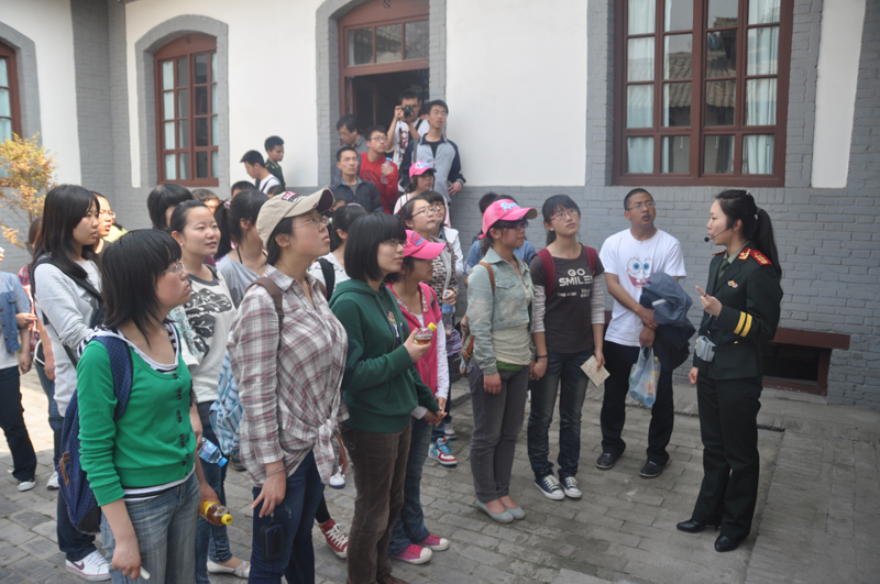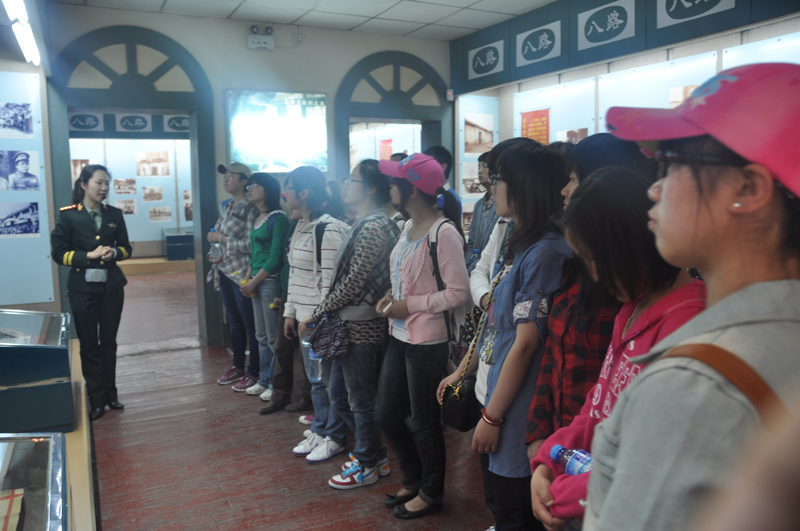 参观开始前,院团委副书记史暐老师向各位同学介绍了此行目的。此次参观学习活动是学院团委开展庆祝建党90周年主题教育实践活动的一项重要内容,希望通过“追寻红色足迹”, 使广大同学更加深刻地了解党史,进一步熟悉中国共产党老一辈无产阶级革命家前仆后继、出生入死、英勇奋斗的艰苦历程,感受无数革命前辈为共产主义的远大理想和中国革命事业奋斗不息的革命精神。为了使大家全面了解八路军西安办事处和那段难忘的历史,学院邀请了场馆内的专业讲解员对各展馆和办事处的旧址作了全程讲解。在工作人员讲解完后,同学们意犹未尽,自发的来到了展物面前对革命先辈的光辉事迹进行深入的学习。