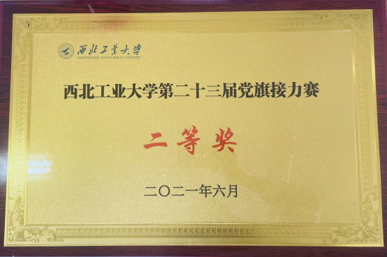 为庆祝中国共产党成立100周年,2021年6月19日,第二十三届党旗接力赛在西北工业大学长安校区举办,我院师生党员参加此次党旗接力赛并获得二等奖。参加此次比赛的还有省内其他五所兄弟院校。
