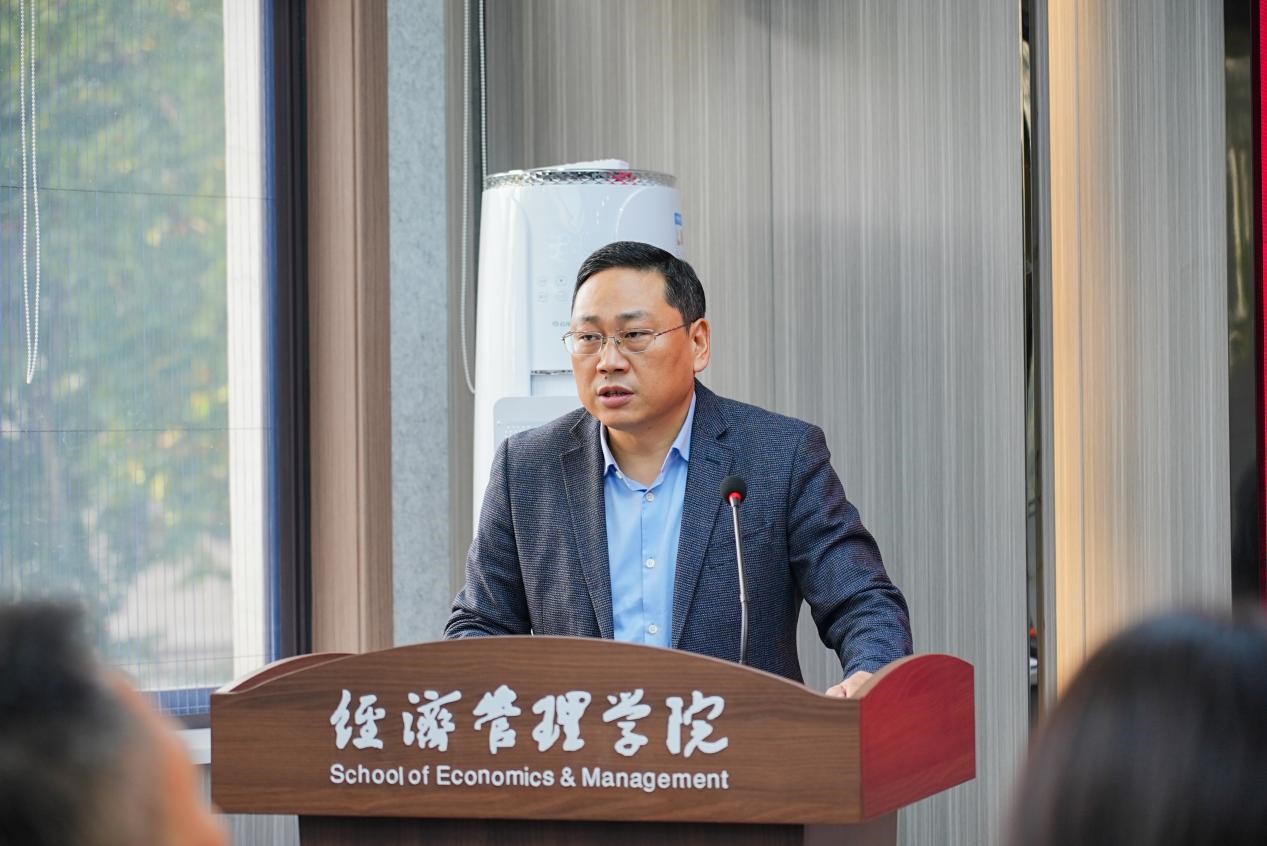 蒋怡在致辞中用“再次思考”“再次提升”“再次感谢”三个关键词回顾了陕西银保监局和西北大学的前期合作,并对共建合作进行了指导。蒋怡指出党的十八大以来,党中央不断强调要“坚决查处各种金融风险背后的腐败问题”“增强防范风险意识,提高治理腐败效能”。所以希望大家能带着自己的从业经历,借由这门讲座,再次思考行稳致远、清廉从业对于自己职业发展的重要意义。也希望大家可以结合自己的本职工作,对金融业实务有个再次学习、提升的过程。最后对西北大学经管学院在“立德树人”方面做得努力表示肯定,对西北大学在清廉金融文化建设中给予的大力支持表示感谢。