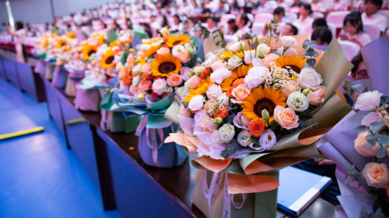 在毕业生即将离别母校,踏上人生新征程之际,2022届毕业生代表向学院教师代表献花,感谢老师的辛勤培育和谆谆教诲。