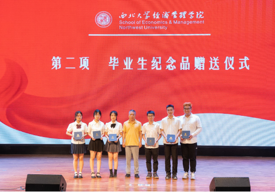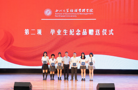 茹少峰教授为数理经济与统计学系本科毕业生赠送纪念礼物