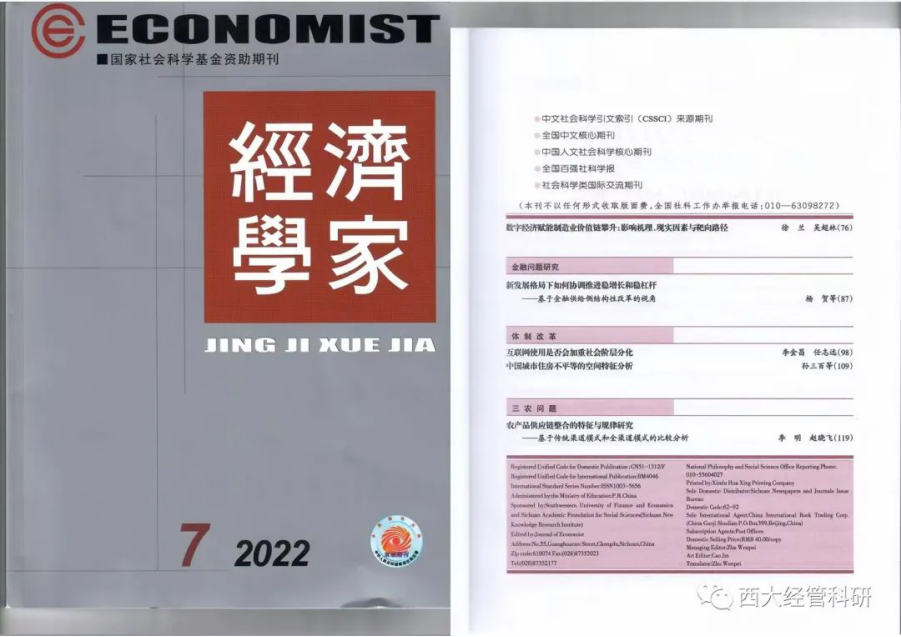 金融学系博士生杨贺的论文在权威期刊《经济学家》发表