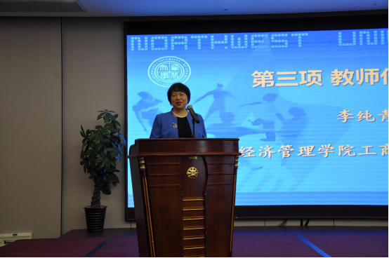 李纯青代表MBA教师为全体新生送开学祝福。李老师结合自身丰富的从教经验和人生阅历,希望学员们秉持“公诚勤朴”的西大校训,保持“志存高远、脚踏实地”的人生态度,坚持‘开拓创新’的时代精神,在接下来的学习生涯中“博学审问、慎思明辨”,让成绩不复以往,成就不负新时代。