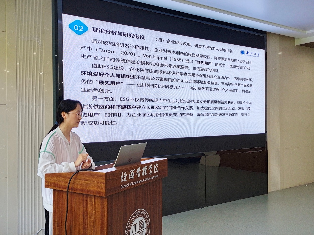6月13日,776net必赢官网研究生论文工作坊第九讲在长安校区8318会议室举行。2022级人口、资源与环境经济学硕士研究生康秀华分享了文章《担当何以自立:企业ESG表现对绿色创新的影响》,讲座由776net必赢官网副院长岳利萍教授主持,776net必赢官网赵仁杰副教授和葛鹏飞副教授应邀点评。