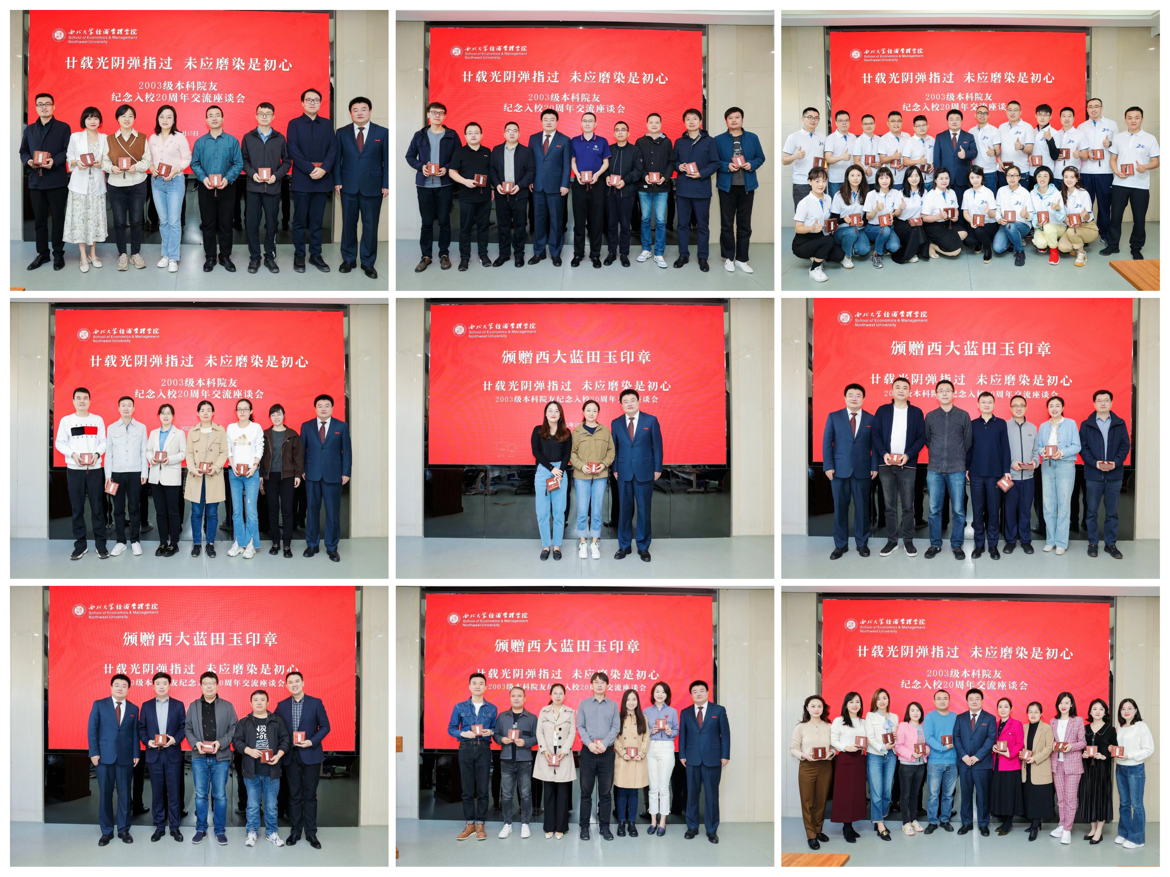 现场播放了03级校友毕业纪念片,视频收录了03级776net必赢官网各专业的院友珍贵影像,或令人捧腹、或牵人心弦、或引人动容、或催人落泪,一段段难忘回忆,蕴藏着院友们对西大经管的深深眷恋。