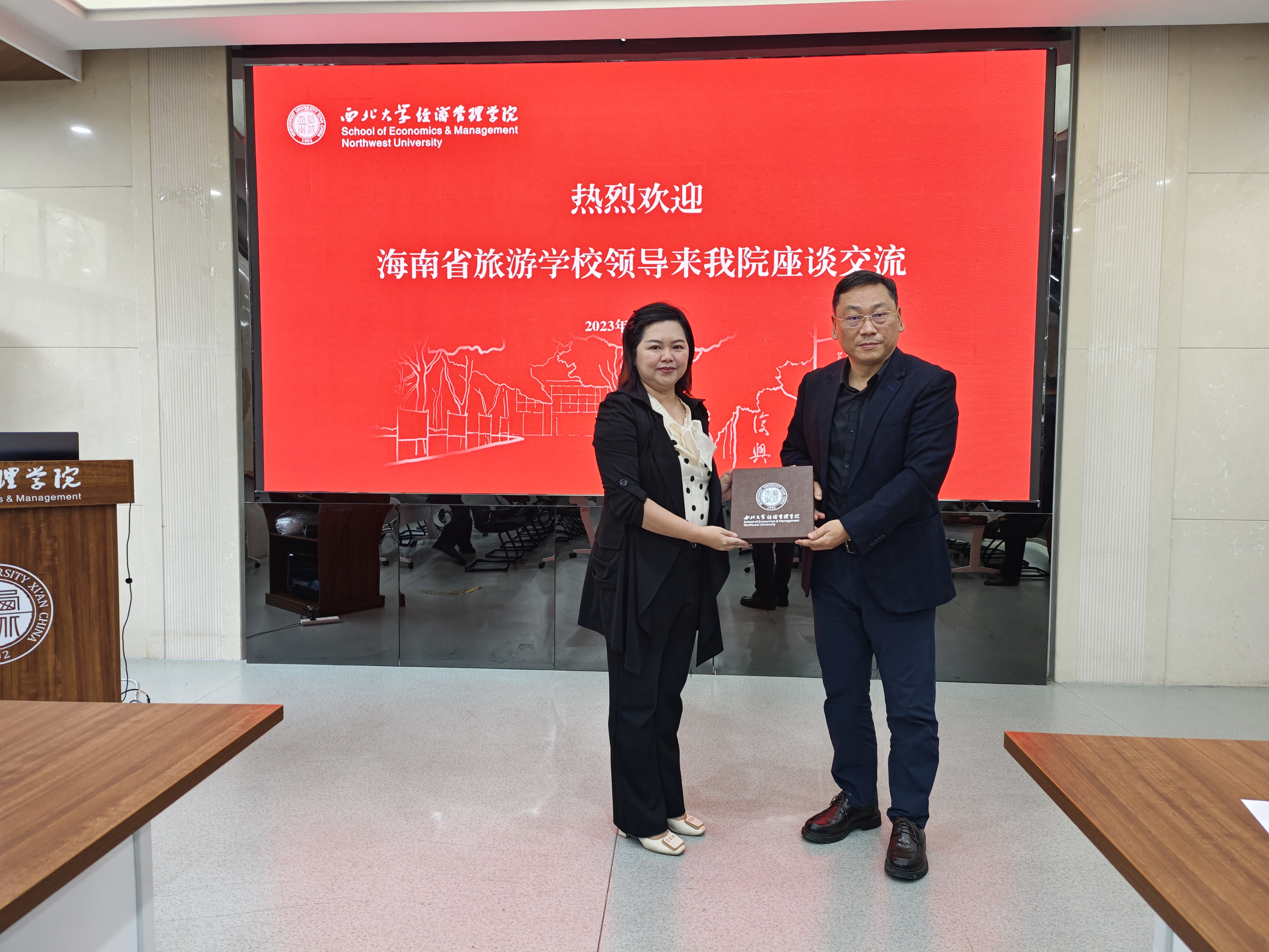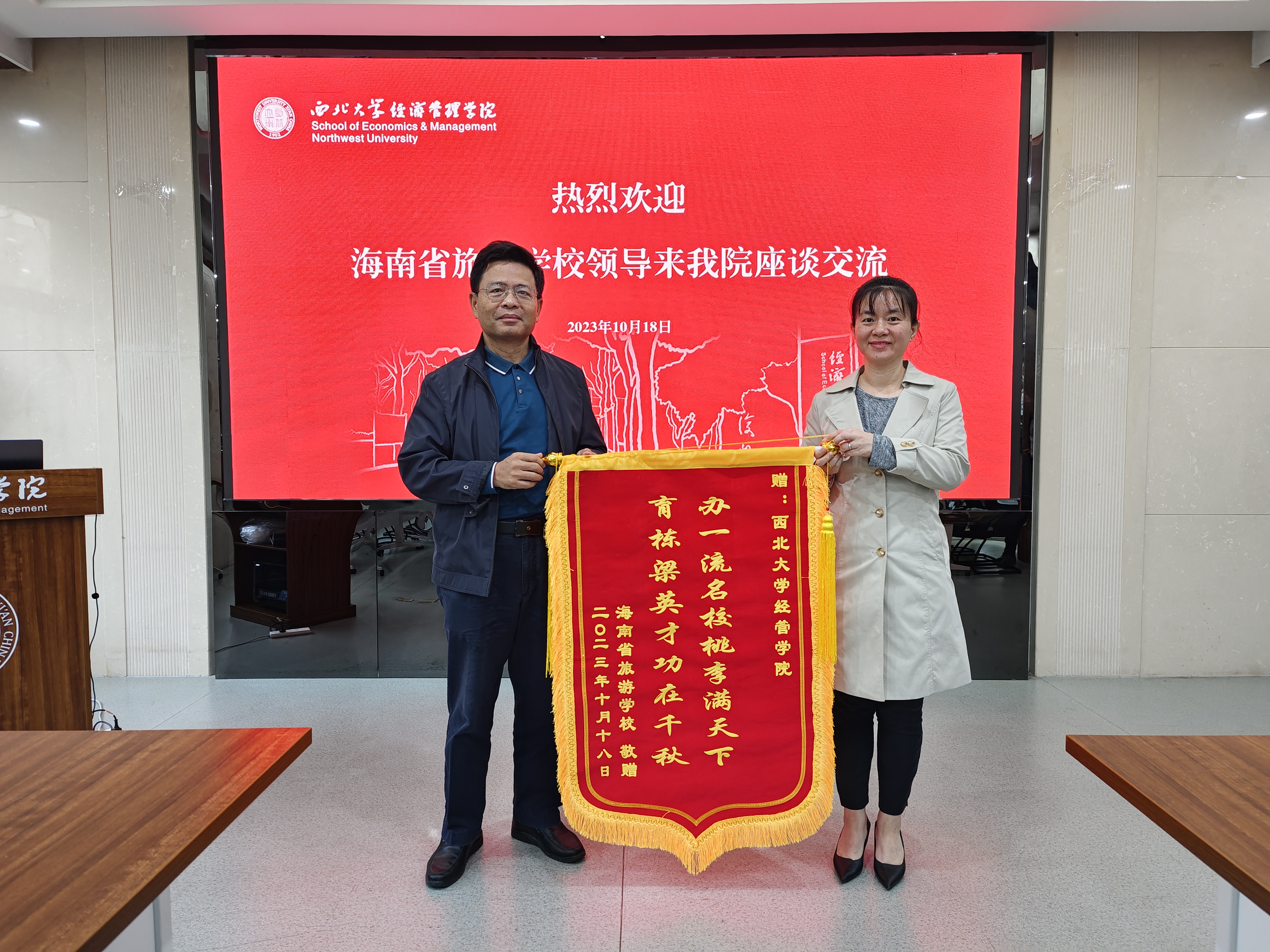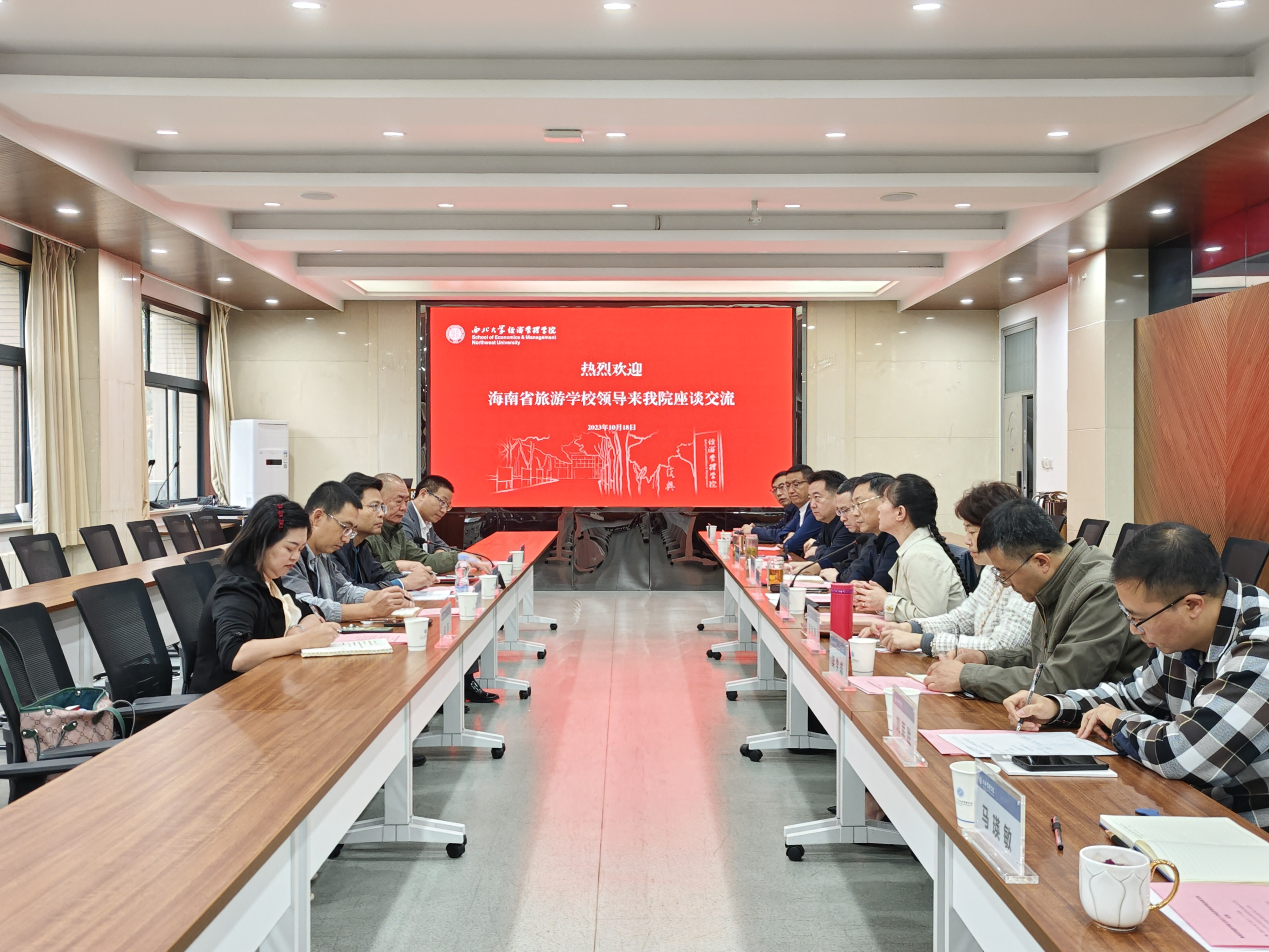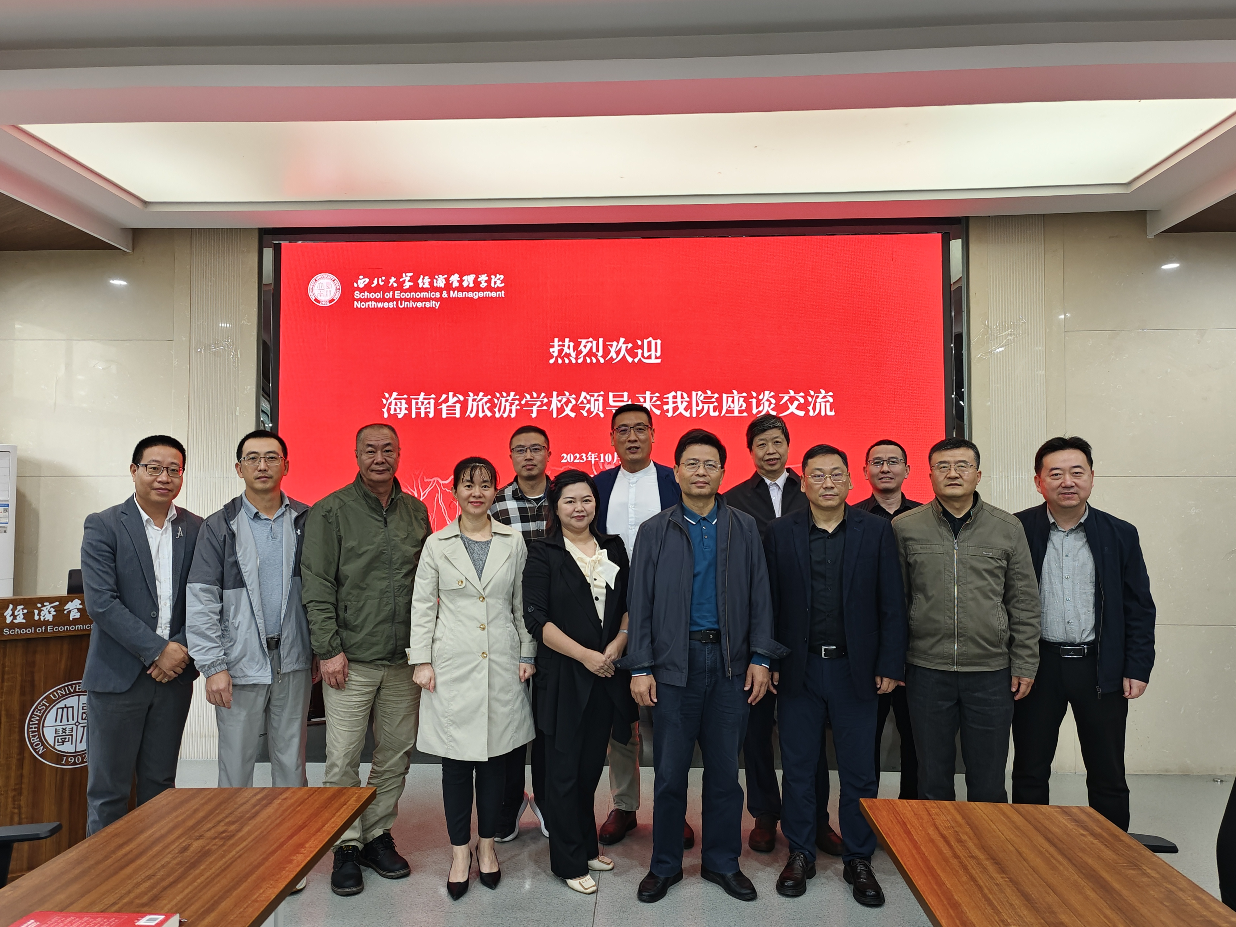 10月18日上午,海南省旅游学校一行来我院座谈交流。海南省旅游学校校长陈春福,海南省旅游学校党委委员、纪委书记陈新,海南省旅游学校办公室主任罗喜鹏,海南省旅游学校教师、全国特级导游敖燕军,我院03级旅游管理专业校友、2022年全国最美教师、海南省旅游学校教师、海南省教师教学工作室主持人何燕,我院党委书记杜勇,院长马莉莉,副院长张华岭、李辉、岳利萍,旅游管理系主任梁学成,西北大学MBA教育中心和高级管理培训中心主任郭亚军,旅游管理系副教授陈实、刘军胜、学院校友办公室主任吴丰华,校友办公室秘书马瑛敏参加座谈。座谈会由杜勇书记主持。