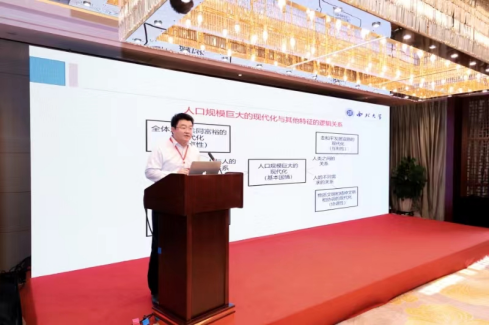 在11月19日上午的第二阶段主旨发言中,西北大学副校长,教育部人文社科重点研究基地——中国西部经济发展研究中心主任,我院吴振磊教授作了题为《人口规模巨大的中国式现代化的逻辑理路和现实进路》的主旨演讲。