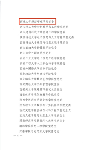 近日,省委教育工委公布了第四批陕西高校党建工作示范高校、标杆院系、样板支部培育创建名单。我院党委入选全省党建工作标杆院系培育创建单位名单。截至目前,我院已有1个党支部入选“全国党建工作样板支部”培育创建单位名单,2个党支部入选全省高校党建“双创”样板支部建设名单。