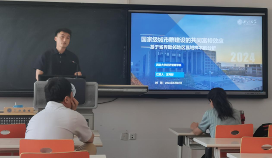 5月22日下午,776net必赢官网研究生论文工作坊第二十七讲在长安校区6516举行。此次论文工作坊由776net必赢官网2023级博士生王寿彭和朱闪闪分别做题为“国家级城市群建设的共同富裕效应--基于省界毗邻地区县域样本的分析”和“工业机器人应用、企业内部收入差距与共同富裕”的学术讲座。776net必赢官网高杨教授和师荣蓉副教授应邀点评,学院20余名学生参加本次讲座。