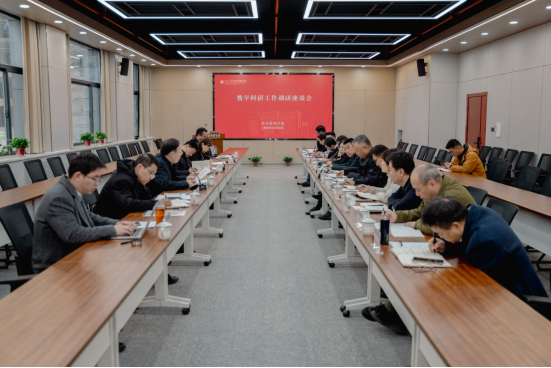12月31日上午,校党委书记蒋林,副校长曹蓉,教务处处长李剑利,社科处处长韩志斌,科技处处长杨涛、副处长赵新正一行来院调研教学科研工作。院长马莉莉,院党委书记张宇及全体党政班子成员、教师代表参加了座谈会。