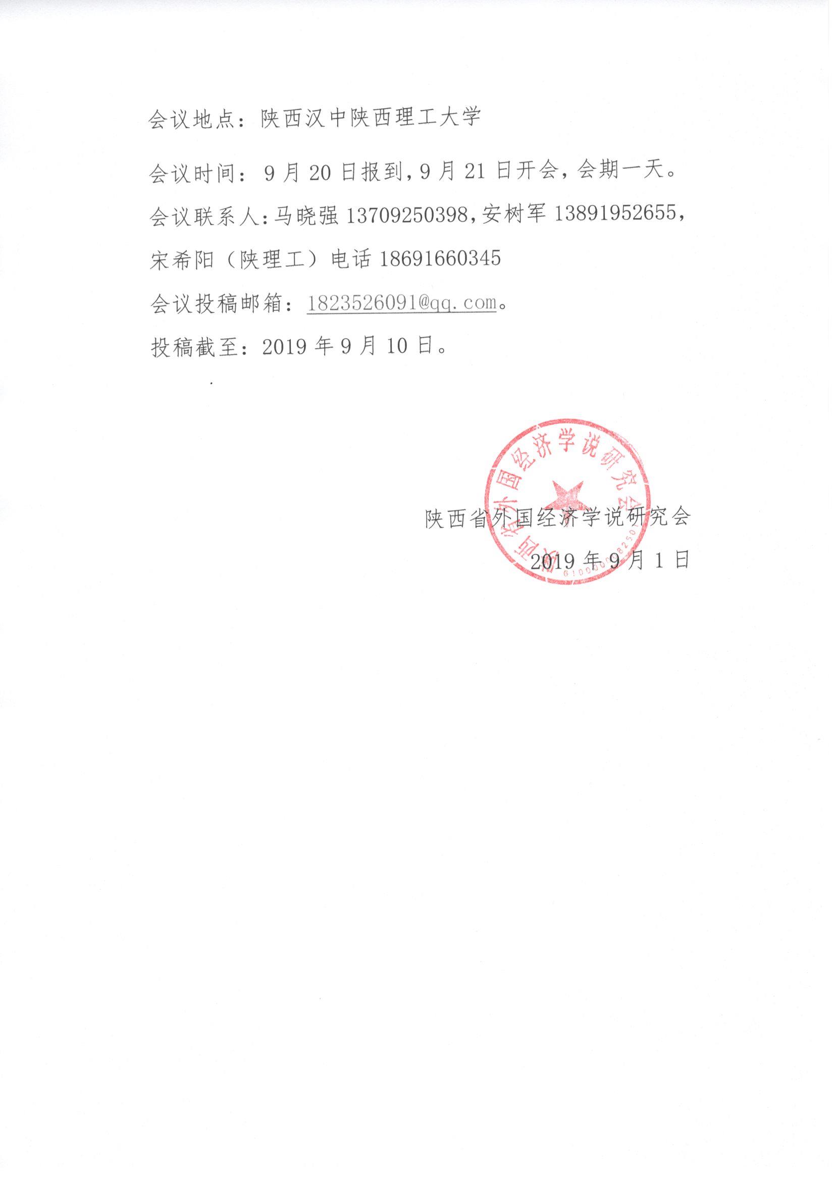 [ 回执 ]2019年陕西省外国经济学说研究会纪念新中国成立70周年汉中研讨会.doc