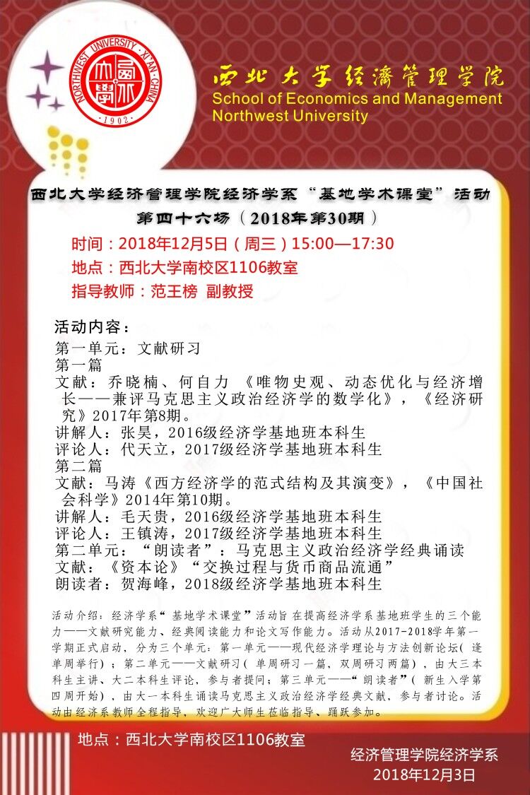 776net必赢官网经济学系“基地学术课堂”活动第四十六场(2018年第30期)