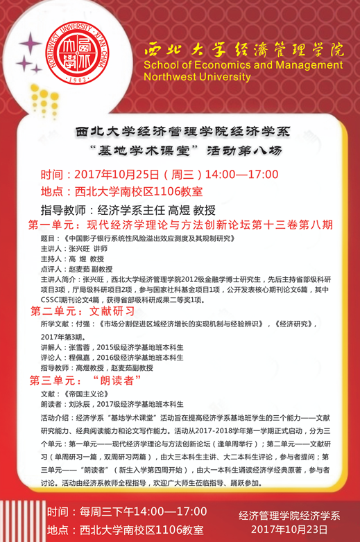 776net必赢官网经济系“基地学术课堂”活动第八场