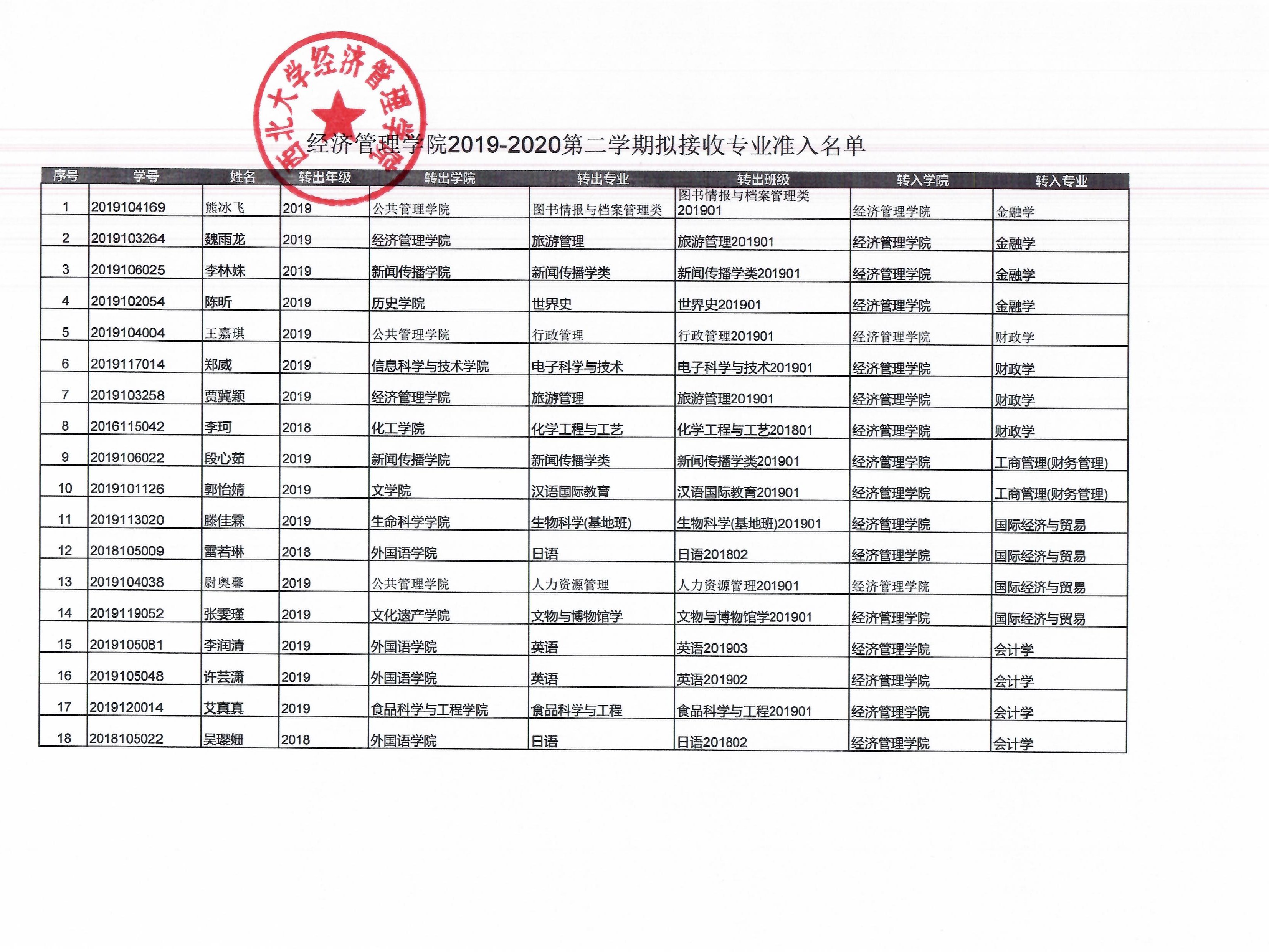 776net必赢官网2019-2020年第二学期拟接收专业准入名单