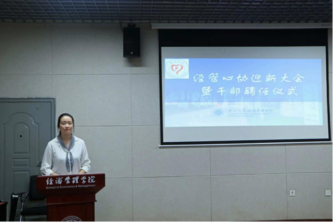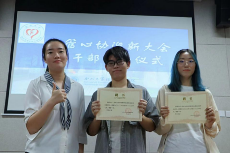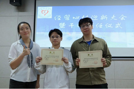 戴昶对各部门成员为经管心协所做的贡献和付出表达了充分的肯定与鼓励,同时对未来的工作提出了建议,并为心理协会11位干部颁发聘书。会长梁铠威从社团简介、成员介绍、成果展示、工作规划四个方面对经管心协的基本情况作以介绍,并对本学期将要开展的活动进行了部署安排。
