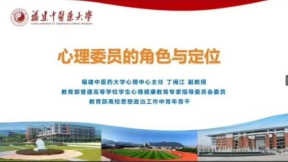 10月28日晚“心理委员的角色与定位”,福建中医药大学大学生心理健康教育指导中心主任丁闽江老师通过一个个示例生动有趣地向大家讲解了心理委员的工作职责、分享了心理委员工作的创新方法,号召大家以朋辈的身份去关怀和陪伴周围的同学,去体会朋辈之间传递的温暖,并对心理委员的各项工作要求做了详尽的解释。讲述过程中,丁老师插入了许多和心理相关的漫画以及示例,同学们反响热烈,讨论积极,获益匪浅。