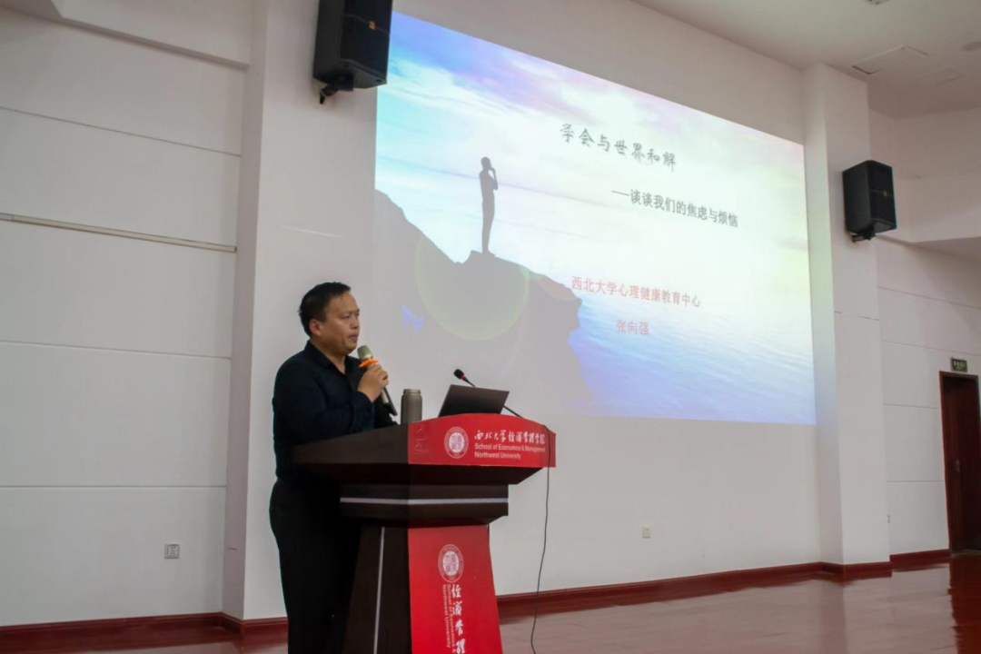 10月11日下午,776net必赢官网2023级研究生新生心理讲座于金海恒业报告厅顺利举行。讲座邀请到西北大学心理健康教育中心常务副主任张向强主讲,学院心理专干戴昶主持,全体研究生新生与心协部分成员参加学习。