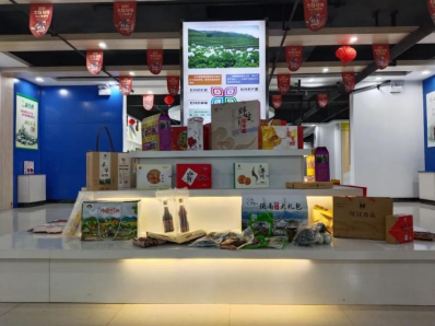 在电子商务发展中心内部,还有一角用于展示旬阳市的特色农产品。展示馆全面地展示了旬阳的特色产品,不仅有为人熟知的拐枣制品,还有正在培育的新产品,工作人员都向实践队队员一一介绍。