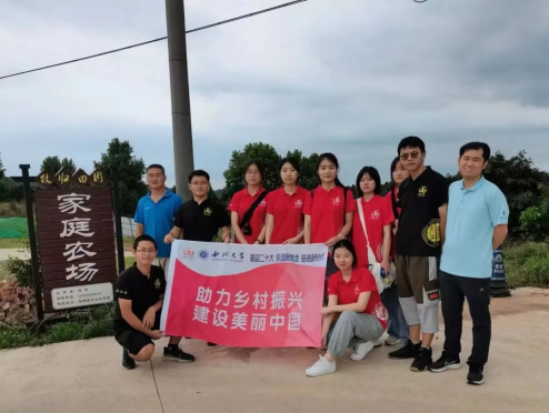 7月17日,实践队一行来到了位于四川德阳旌阳区著名的“家庭农场”。团队成员在农场主邓华先生的带领下,参观农场全貌,了解作物的种植布局与智能浇灌设施,探究智慧农业平台赋能家庭农场。