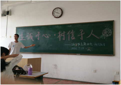 根据我校2016年“诚信教育主题月”的活动要求,我院团委于2016年5月底开展了为一周的“筑梦青春,诚信同行”诚信主题教育系列活动。通过本次形式多样、内容丰富的主题教育系列活动,不仅进一步强化我院学生的诚信意识,提高了我院学生的综合素质,也促进国家助学贷款相关工作的开展,强化我院资助工作的育人效果。同时,通过本次系列活动的开展,对我院学生中存在的诚信问题有了更为深刻的认识,为我院进一步做好学生诚信教育打下了基础。