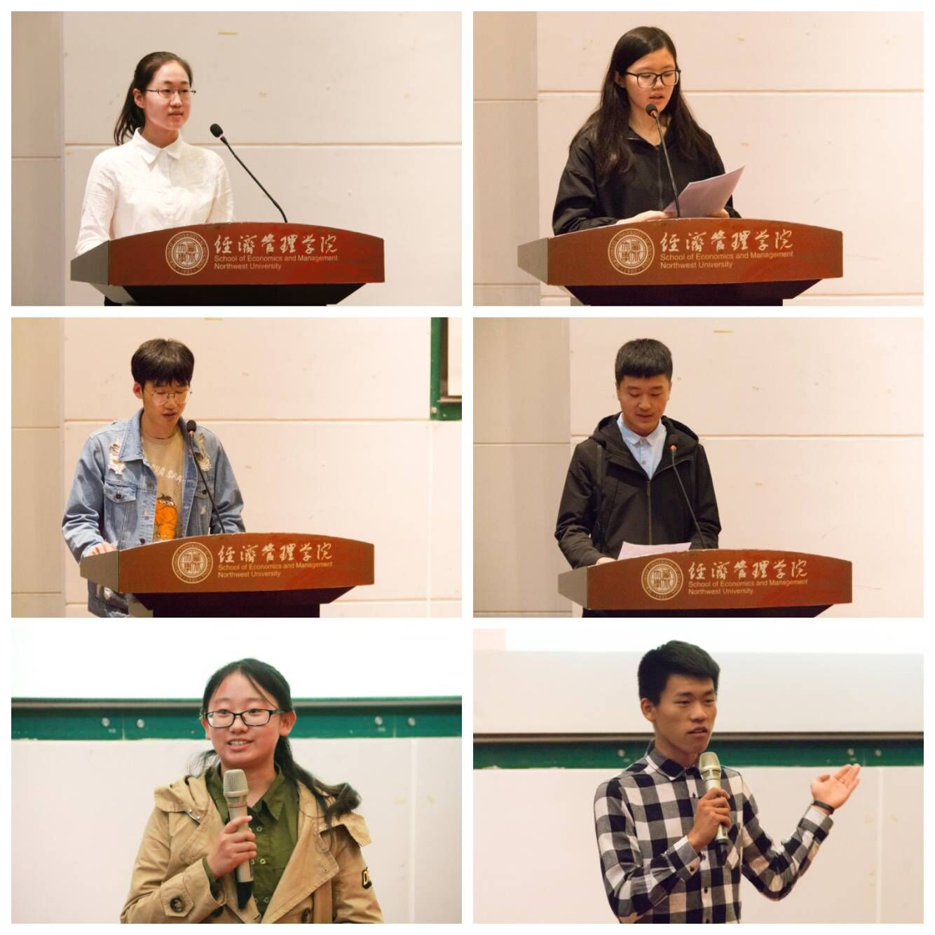 2017级各班选送的12位参赛选手积极准备,充满自信,紧扣“改革-创新-奋斗-成才”这一主题,以“数风流,看今朝”“笃行党的十九大精神,做新时代合格大学生”“点赞新时代”“我与祖国”“幸甚至哉”“星星之火可以燎原”“小确幸”“新时代的强大中国”“厉害了我的国”“梦在远方,路在脚下”“在新时代奋进成长”为题,联系国家改革发展创新成就,联系西北大学发展历史,联系经管精神传承,联系个人成长成才轨迹,或慷慨激昂,或舒缓动情,以饱满的感情和昂扬的精神状态歌颂党的伟绩,讴歌祖国发展,礼赞全新时代,畅想青春梦想,抒发校院情怀,通过不同的故事娓娓讲述经管青年的梦想和责任,点燃了现场观众的激情,引发了现场师生的共鸣,充分展现了经管青年新时代奋发有为的青年形象和追赶超越进取精神。