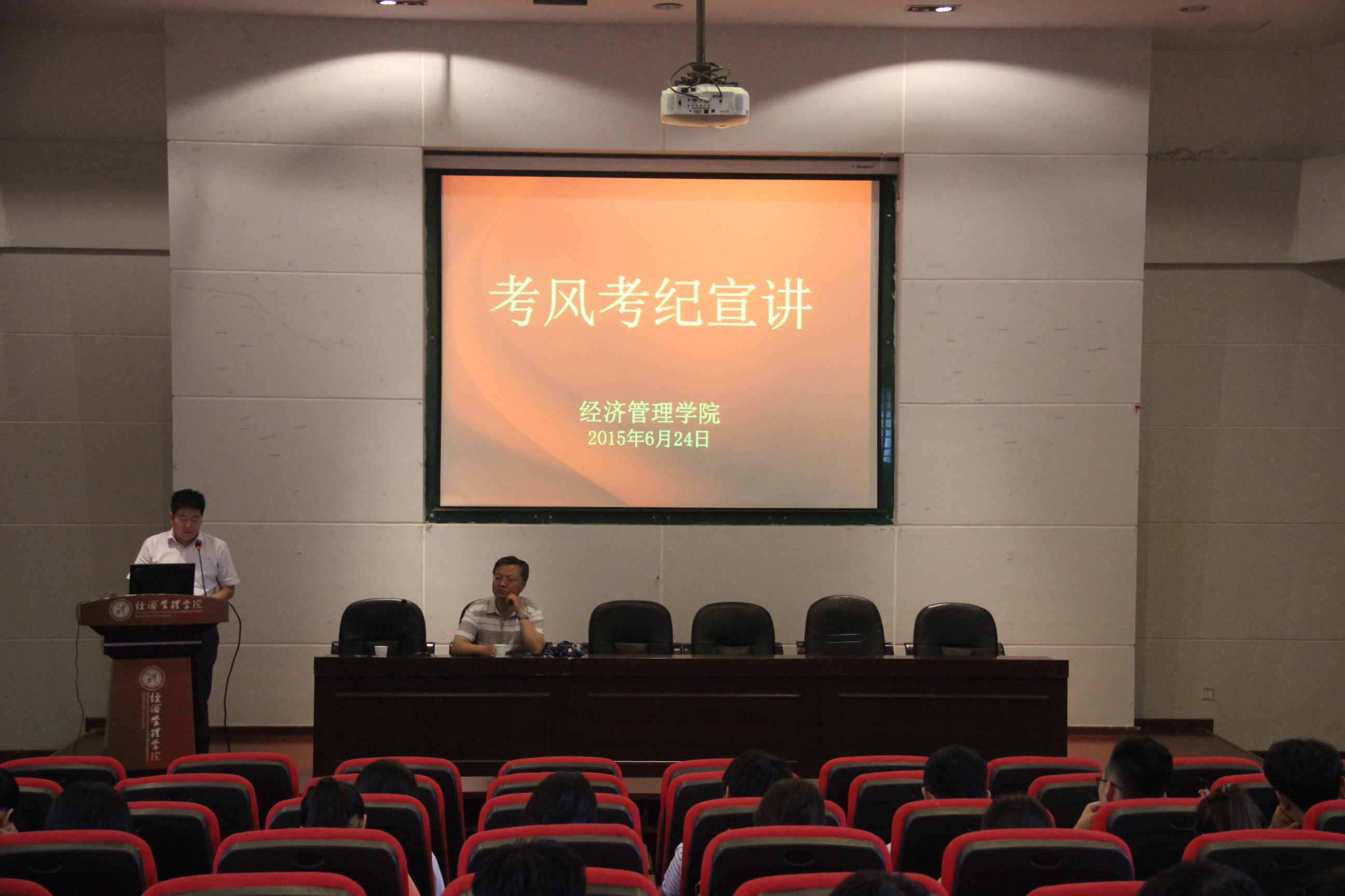 2015年6月24日下午,776net必赢官网在金海恒业报告厅举行了本学期期末考风考纪宣讲会,院教学副院长惠宁教授、院党委副书记李一凡以及370余名大一学生参加了会议。