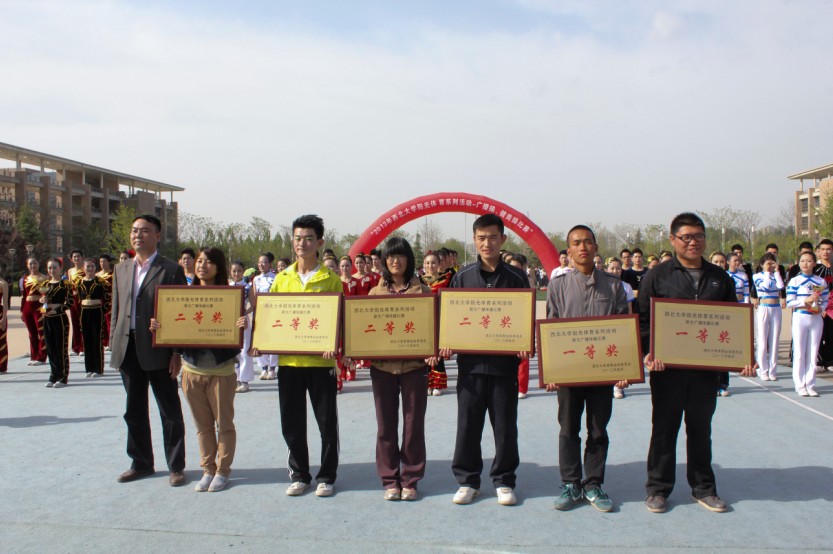 4月10日下午,西北大学2013年阳光体育系列活动——“青春杯”健美操、新生广播操决赛阶段比赛在长安校区举行,经过激烈角逐,我院代表队取得了新生广播操一等奖的好成绩。