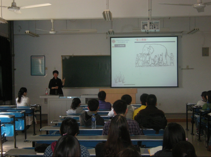 10月22日下午2点,我院学术月活动之学术报告第五场在1210教室顺利举行。本次活动主题为《网络化中的全球重构——奇妙的畅想之旅》,主讲人为我院世界经济与贸易系副主任马莉莉副教授,一百多名硕士研究生参加了此次报告。