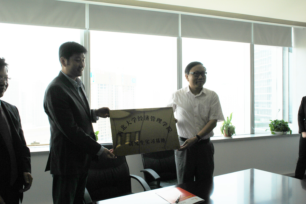 日前,我院与泰来投资有限公司战略合作协议签署仪式在泰来投资有限公司隆重举行,院副院长赵守国、党委副书记樊涛及研究生代表、泰来投资有限公司董事长张耒、副总裁程永康及相关部门负责人参加了签约仪式。樊涛副书记与程永康副总监分别代表双方在战略合作协议上签字,赵守国副院长和张耒董事长共同为“研究生实习基地”揭牌。