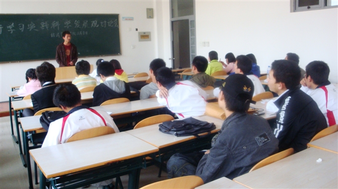 各团支书宣布了学院关于在团员中开展以学习实践科学发展观为主要内容的增强团员意识主题教育活动的实施意见,要求广大团员要认真学习领会科学发展观的重大意义,科学内涵,精神实质和根本要求,并结合实际情况制定出符合学生自身发展的“职业生涯规划”,通过这次活动达到进一步坚定理想信念,提高思想认识,促进全面发展,创建优良学风。08级各团支部围绕主题,通过主题团日宣讲会、小组讨论、交流发言、撰写心得体会等形式不断将这项活动引向深入。