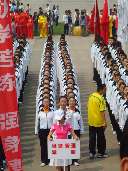 4月16日下午,西北大学第十三届“青春杯”新生广播体操大赛在南校区北广场隆重举行,经过19个代表队的激烈角逐,我院新生代表队脱颖而出,勇夺冠军。