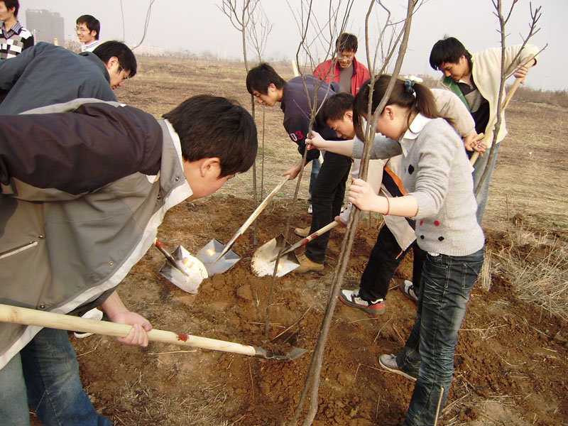 3月11日下午3:40,我院学生准时在南校区中央广场集合。在学生处学生教育科科长那龙宇老师及我院学生工作干部马金保、史暐、张洪杰的带领下,赶赴植树地点。后勤集团的老师向同学们教授相关工作要领之后,同学们在各自的负责区域内开始了热火朝天的植树活动。