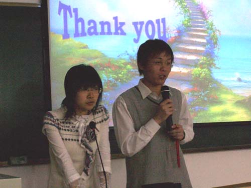 最后,赵老师对国贸系的同学提出了学好英语,练好英语口语,用好英语的要求,鼓励同学们学好外语,走出国门,提高自身素质,为祖国作出自己应有的贡献。