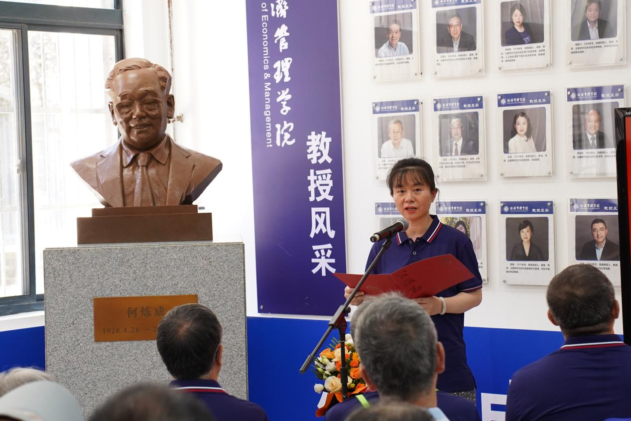 在活动中,由77级校友、北京大学国家发展研究院联合创始人张维迎教授,西北大学郭立宏校长,常江副校长和吴振磊副校长共同为何炼成先生塑像揭幕。吴振磊副校长为何炼成先生铜像捐赠集体——77级经济系颁发了捐赠证书。776net必赢官网院长马莉莉教授在致辞中指出,何先生治经世济民之学,提出了诸多具有创新性和前瞻性的理论观点;守教书育人之道,扎根西北七十多年,培养的学生共获得8次孙冶方经济科学奖;孜孜以求、笔耕舌耘,形成了独特的问题意识和方法论。她表示,全院师生将在学校的坚强领导下,不负先生之志,为把学院建设成为国内一流、国际知名的经管学院而不懈奋斗。