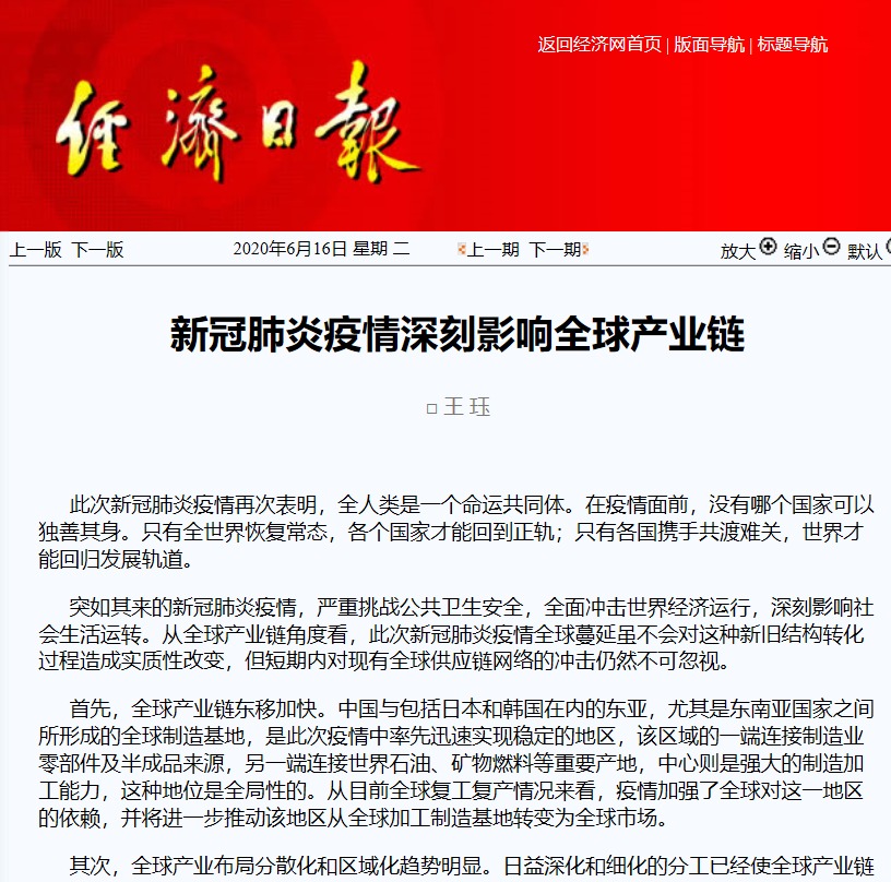 已经过半的2020年,全球经济都弥漫在新冠疫情的笼罩下,全球产业链深度变革,世界经济格局发生演变。近日,《经济日报》刊发我院教师王珏教授的专题文章《新冠肺炎疫情深刻影响全球...